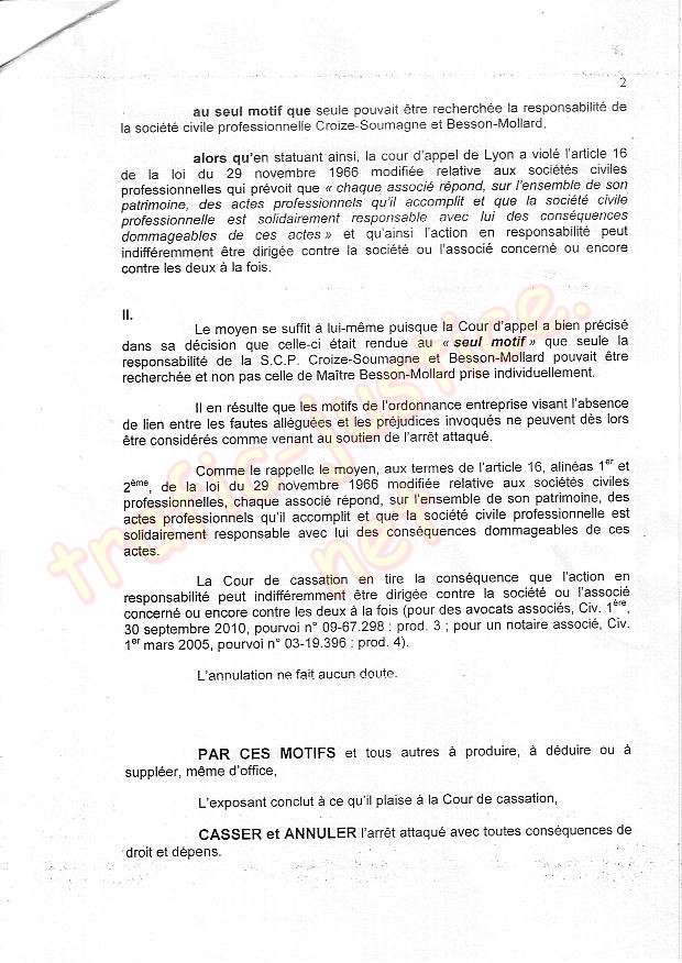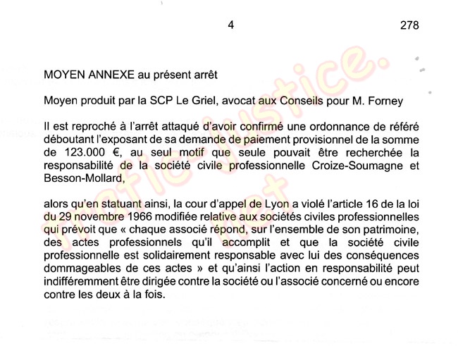 « Attendu que . se heurte à des contestations sérieuses au fond, alors que cette dernière exerçait ses fonctions au nom de la SCP CROIZE-SOUMAGNE et BESSON-MOLLARD si bien que seule la responsabilité de la dite SCP peut être recherchée ;
