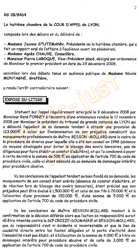 Mon avoué RAHON Alain, hypocrite, est absent à l'audience du 2 mars 2010 - Verdict ci-dessous du 6 avril 2010 |