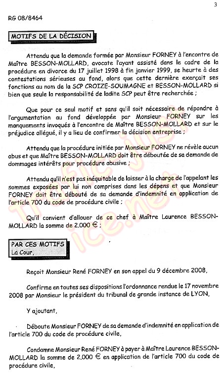 L' arrêt en cause de la Cour d'appel de Lyon rejette ma demande en écrivant :