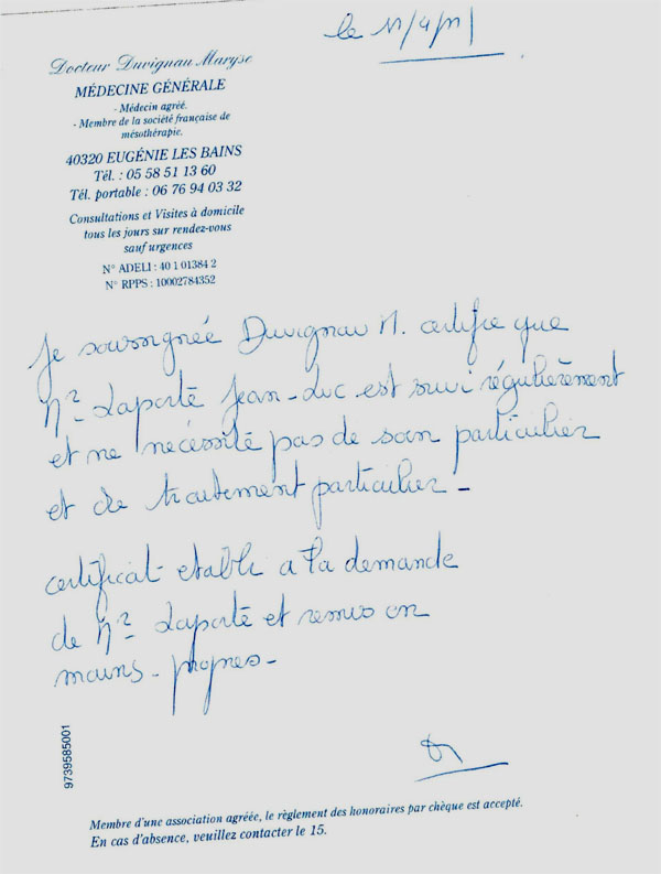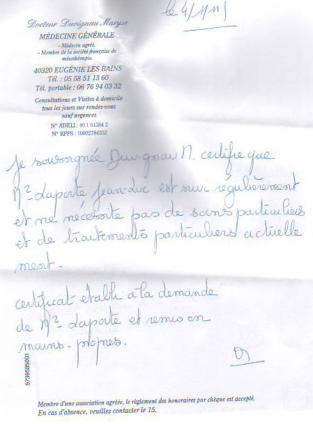 Le même certificat sur plusieurs années d'un médecin qui dit qu'il n'y pas nécessité de soins particuliers alors qu'un psychiatre voie un fou !