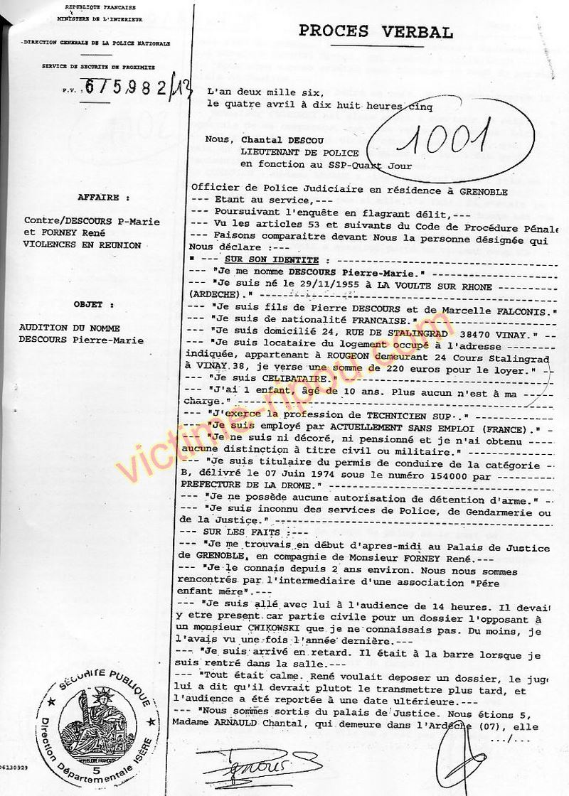 | Accueil Pièces jointes de parti civile (la veille), et à l'audience du 14 oct. 2009 en rétorsion contre le témoin DESCOURS, suite a sa tentative de faire la lumière sur les faux documents demandés par des magistrats à des policiers et des médecins pour couvrir la vengeance de CWIKOWSKI. (Verdict 26 novembre 2009) |