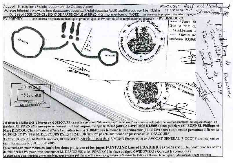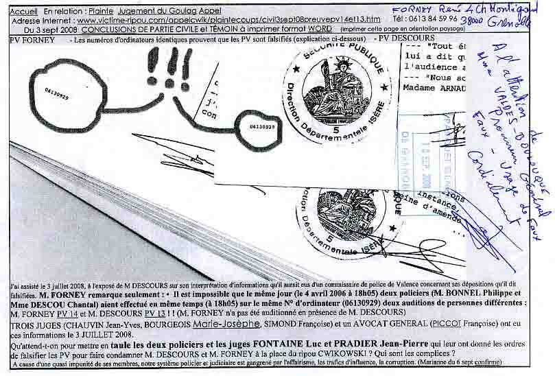 Détail sur adresse Internet : www.victime-ripou.com/appelcwik/plaintecoups/civil3sept08preuvepv14et13.htm