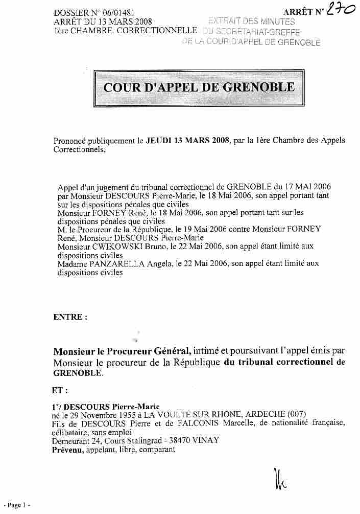 Dans cet arrêt du 13 mars 2008, une acceptation de mon préliminaire, mais encore quelques dénigrements malgré les preuves dans mes conclusions et pièces (204 pages).
