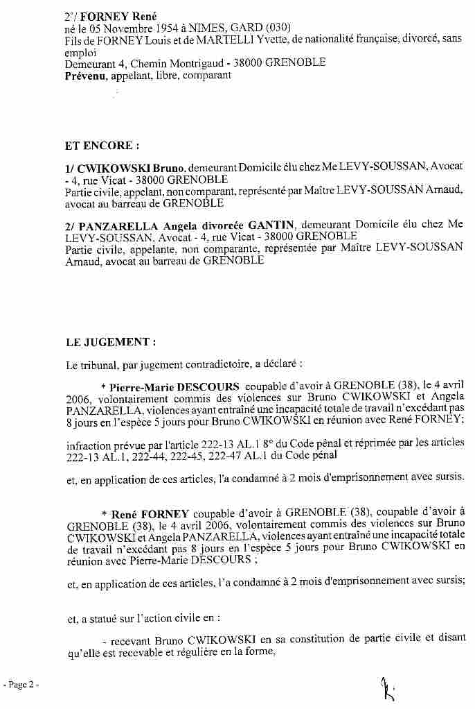 Les juges auront-ils le courage d'aller au bout de l'interrogatoire en recherchant les donneurs d'ordres pour falsifier le rendu de la justice qui devait protéger le ripou CWIKOWSKI ?