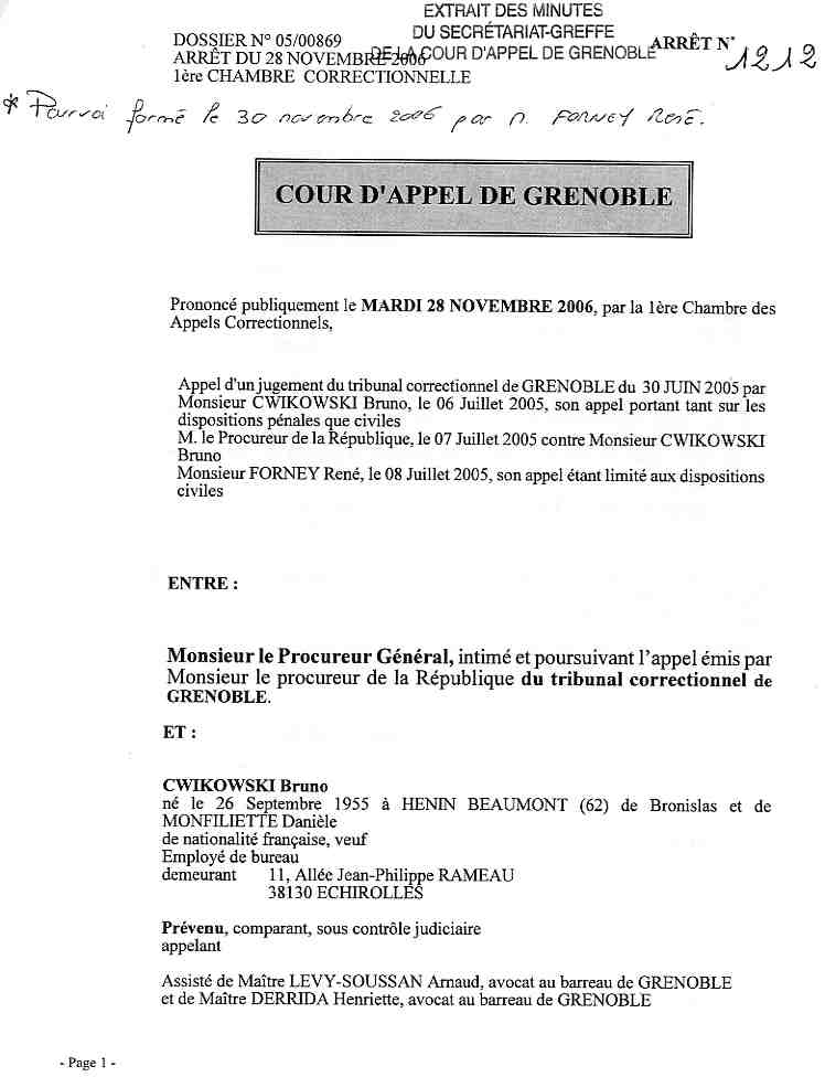 FORNEY partie civile / CWIKOWSKI Bruno / CHOUTEAU Jean Bernard