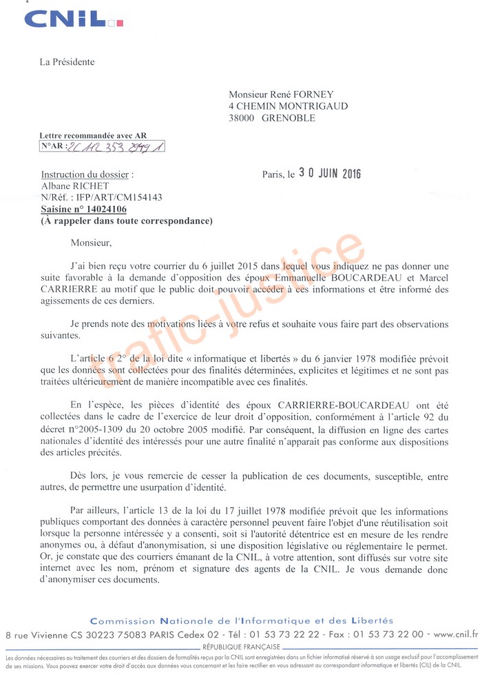 La CNIL persiste dans ses pressions ci-dessous dans sa complicité avec des truands pour cacher leurs malversations. Des truands que la justice a aussi refusé de sanctionner en fixant une consignation astronomique ! Des relations ! ( Comme Maurice PAPON)