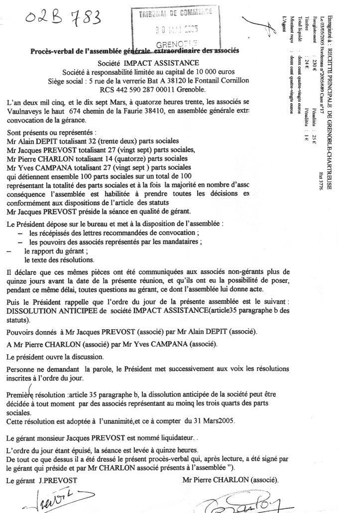 DISSOLUTION ANTICIPEE de IMPACT, 3 jours après !! la présentation à la police de ma lettre du corbeau !