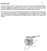 Soyez assuré Madame que je ferai tout ce qui est en mon pouvoir pour que les magistrats corrompus dans cette affaire soient traduits devant les assises même si actuellement les lois ne sont pas appliquées concernant ces trafics d'élus peu scrupuleux. Ils ont utilisé la prison pensant me faire taire, maintenant, vous aussi, vous savez. J'espère que vous ferez comme la dizaine de rares magistrats qui ont refusé de se plier aux dictats de quelques mafieux et faciliterez la poursuite de mes activités associatives. Je reste à votre disposition afin de vous communiquer tout document sur la gravité de ces abus de pouvoir